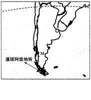 4、单选题 科学家曾观测到南极上空的臭氧层空洞扩大到智利南部城市蓬塔阿雷纳斯(540S,720W)上空。读图回答题。