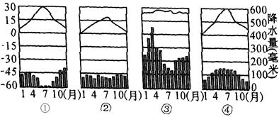 2、单选题 分析所给四幅降水量和气温月份分配图指出下列四组中的气候类型,判断正确且排序和图中顺序相符的是