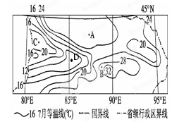 3、单选题 读“西北某局部地区7月份等温线分布图”,回答以下问题。