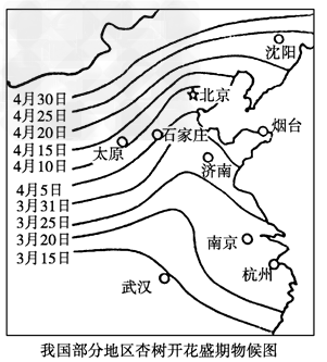 D.杭州到武汉杏树开花盛期时间不同,主要体现了从沿海向内陆的地域分异规律