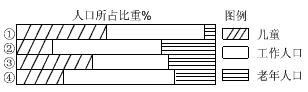 5、单选题 读某四国人口构成示意图,回答(1)——(2)题。