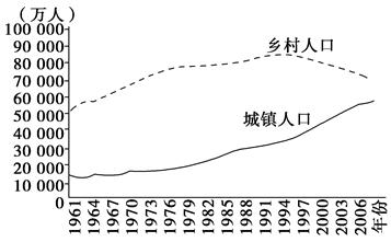 1、单选题 下图示意某国城镇人口和乡村人口的变化。读图回答小题。