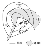 1.有关图中四地天气状况的正确叙述是2.关于戊地天气系统的正确组合为
