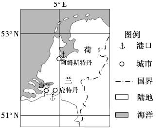 【小题2】荷兰位于亚欧板块内部,不是板块交界处,A错。纬度高,水温低,缺少珊瑚礁发育,B错。常年受盛行西风带影响,风力大,降水丰富,C对。图中荷兰纬度跨度约1°,距离约111千米,D错。