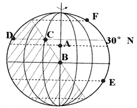 (3)图中B点位于晨线与赤道的交点,地方时为6点。根据图可知C点日出时为4点,根据昼长计算公式可知,该地昼长等于(12-4)*2=16小时。