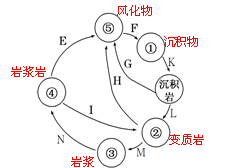 3、单选题  腾冲位于云南省西部边陲,境内有97座火山群、62处地热泉,盛产翡翠玉石。下图为“岩石圈物质循环示意图”,数字序号表示岩浆、岩浆岩、变质岩、风化物、沉积物,字母表示各种地质作用。据此完成下列问题。