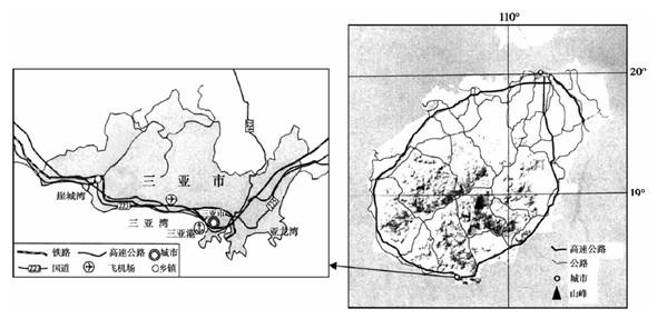 (1)描述海南岛交通线的分布特点,并分析其主要自然原因。(8分)