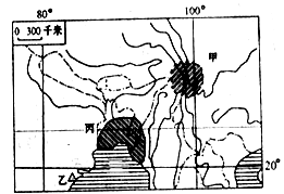 1.甲阴影区为世界著名自然遗产所在地,该地区地形最主要的外力作用是2.假如在乙地有一盐场,对于此盐场的叙述正确的是
