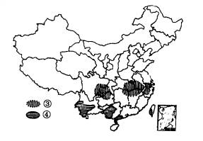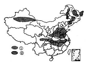 1.下列经济作物的排序与图中主要分布区一致的是2.读图判断,既有棉花又有油菜分布的省区是