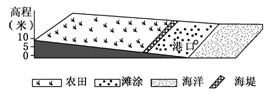 2、多选题 据专家预测,因全球气候变暖世界海平面到2100年将升高40~50厘米。下图为“我国某地区海陆过渡地带示意图”。读图,完成1—2题。
