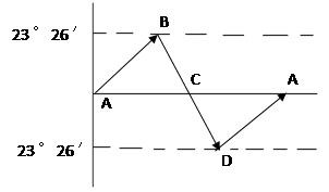 2、单选题 读太阳直射点周年回归运动示意图,回答下列各题: