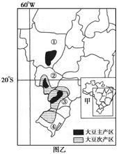 5、单选题 读“巴西(图甲)大豆产区在各州的分布示意图(图乙)”,完成问题。