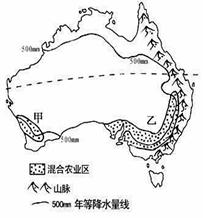 2.图示乙地区种植业和畜牧业并重,判断为混合农业,澳大利亚的墨累—达令盆地以小麦—牧羊式的混合农业著称。