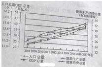 1、单选题 图示意我国2008~2017年人口总量、GDP总量、能源生产总量、能源消费总量变化的现状及预测情况。据此完成下列各题。