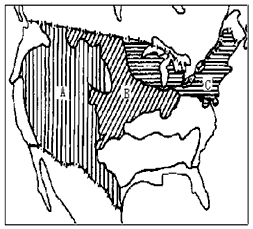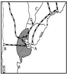 5、单选题 右图中的圆形阴影部分表示四种农作物在北半球的分布区。读图回答5~6题。