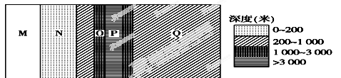 2、单选题 图中M是陆地,其余为海底地形。石油资源主要 分布在图中的( )