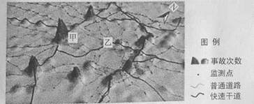 5、单选题 下图为利用现代地理信息技术制作的我国东部某城市一城区月交通事故次数示意图。完成下列问题。