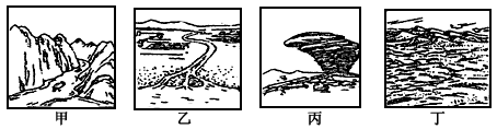 5、单选题 读地理素描图判断,因流水侵蚀作用而形成的地貌图是