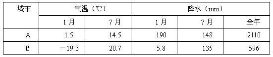 (3)1月份,A、C两地的多年平均气温均在0°C以上,但降水却有明显的差别,试分析其原因。