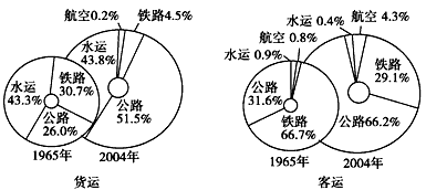 1、单选题 读“日本运输结构变化示意图”,完成1—2题。