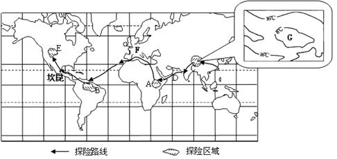 2、综合题 我国某校“环球探险社团”在暑期进行了网上模拟探险活动,下图表示探险区域和探险路线,读图回答下列各题。(11分)