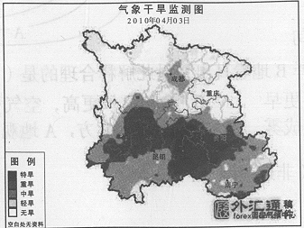 材料一:图为2010年4月3日西南地区气象干旱监测分布图:?