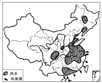 5、综合题 读我国洪水灾害分布图,分析回答问题。