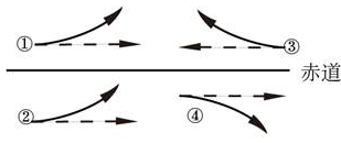 本题解析:南北半球地转偏向力方向的差异:北半球向右偏,南半球向左偏,注意结合图示应面对原始运动方向来看实际运动方向,故②③正确。