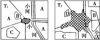 (2)在城市T1发展到T2过程中,由于____逐渐扩大和______不断增多等原因,农业生产规模日益扩大,这有力地说明了农业生产在很大程度上受______的影响。