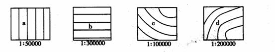 3、单选题 下图是“等高距相同的地形图”,有关a、b、c、d四处坡度大小的说法,正确的是