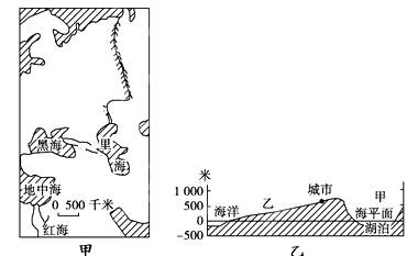 (1)欧亚两洲之间以图甲中的________、________和________一线作为地理分界线。
