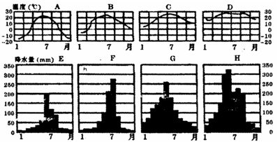【小题3】EFGH降水分配与城市对应正确的是:( )