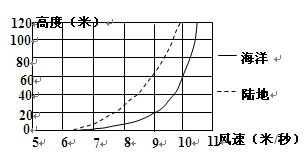 2、单选题 图是陆地与海上风速随高度图变化图。读图回答问题。