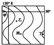 小题1:图中三条28°C等温线将图示地区划分为甲、乙、丙、丁四个区域,其中温度相对较低的区域是?(?)