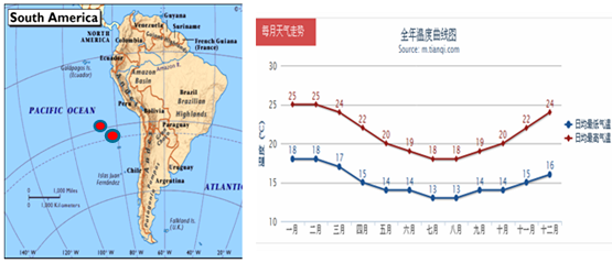 材料一:下图为伊基克的地理位置和全年的气温分布图。