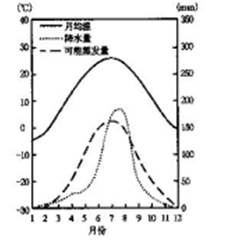 小题2:该地年降水量大约600mm,降水季节变化大,主要集中在夏季7、8两个月,夏季气温在200C以上,冬季早00C以下,应在华北地区。故选C。