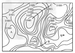 4、综合题 读北半球部分地区某时刻地面等压线图,回答下列问题。