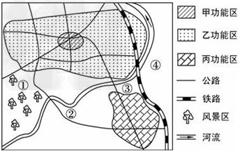 3、单选题 城市地域有住宅、商业、办公和文化等功能分区。读图,完成下题。