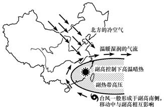 【小题1】读图,如果副高控制区域位于图中位置,位于南部沿海地区,则雨带处于副高北部边缘冷暖气流交汇处,图示位置在长江中下游地区。D对。南部沿海受副高影响,降水少,A错。东北、华北地区受雨带影响时,副高移到长江中下游地区,B、C错。