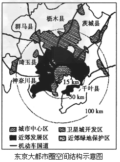2、单选题  东京市目前是日本太平洋沿岸大都市带的核心城市,远郊出现许多卫星城。读图,回答(1)~(2)题。