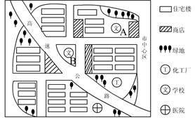 (4)小区内A校和B校相比,________校位置不够合理,原因是__________________,_____________________。