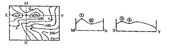 4、单选题 读下面的等高线及地形剖面示意图,完成24—25题。
