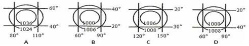 4、单选题 该图所示为四个不同地区的等压线分布图(气压单位:百帕),其中代表北半球夏季大陆的是?