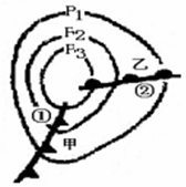 4、单选题 读图北半球某一天气系统图(其中数值为气压值,P1>P2>P3),完成下列各题: