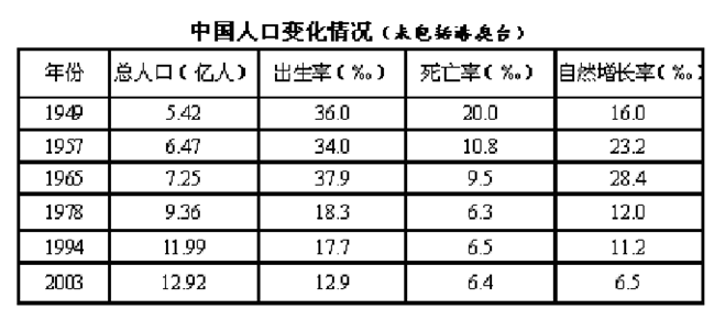 1、单选题 读“中国人口变化情况”表,回答18-20题: