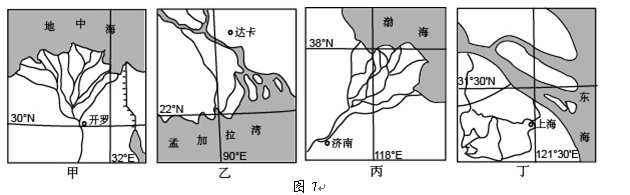 小题1:该三角洲地区最有可能位于图7中的