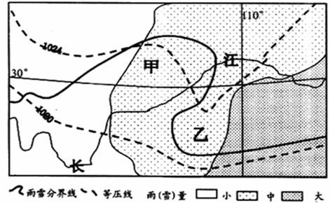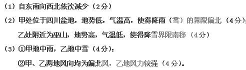 (2)试分析图中雨雪分界线在甲、乙两处发生弯曲的原因。
