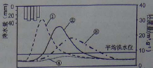 小题1:降水过后,自然状态的洪水汇集过程中由于受到地面阻力作用、下渗,降雨后一段时间才能形成洪水,洪水最高水位时间滞后降雨量最大时间,自然状态的地下径流最大值也应该滞后降雨量最大时间,城市化后地面硬化,下渗减少,地面阻力减小,洪水汇集时间缩短,汇集的水量增大,所以城市化后,洪水水量最大值及其出现时间都要比自然状态的洪水过程洪水量大,出现的时间早,修建水库后,由于水库可以对径流起到调节作用,所以修建水库后洪水最大值和最大值出现的时间要比自然状态的洪水过程洪水量小,出现的时间晚,根据以上过程可以得出城市化后的洪水过程线对应的曲线是①,故答案选A。