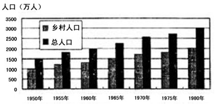 1、单选题 下图是我国城乡人口增长图,读图回答1—2题。