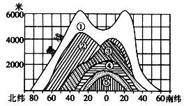 A、自然带②在南半球1500米以下仍有分布